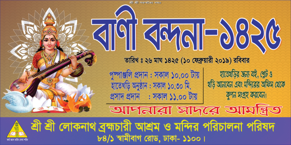 - ১ বৈশাখ ১৪২৯ || ১৫ এপ্রিল ২০২২ || শুভ নববর্ষ, শ্রীশ্রী গনেশ পূজা, শুভ হালখাতা ও প্রসাদ বিতরণ